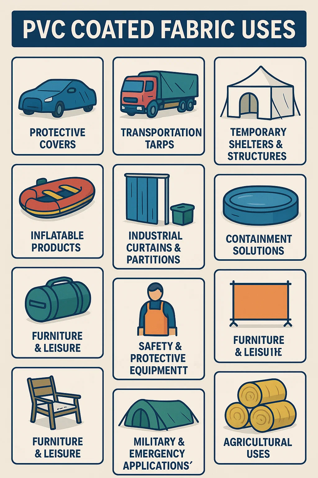 一般的な用途の内訳は次のとおりです PVCコーティングされた生地 、実際のアプリケーションを反映しています。