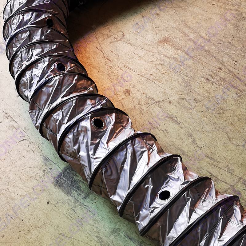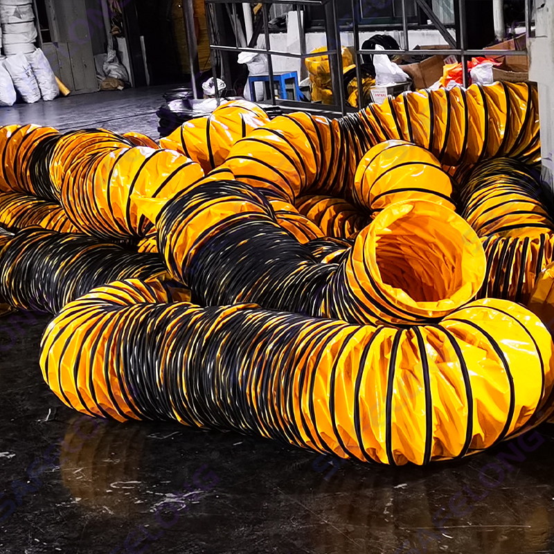 スパイラル亜鉛メッキ鋼線スケルトンが埋め込まれた強化ダクト。大きな傾斜や複数の曲がりがある複雑な作業条件に適しています。